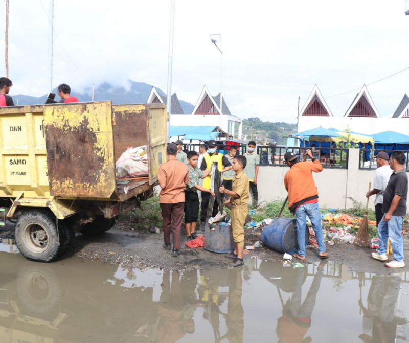 “Sampah dan sisa makanan jangan dibuang di saluran air dan gorong gorong apalagi ke danau. Pisahkan sampah organik dan anorganik dan untuk sampah plastik bisa di jual ke Bank Sampah.” ucap Bupati Poltak Sitorus.