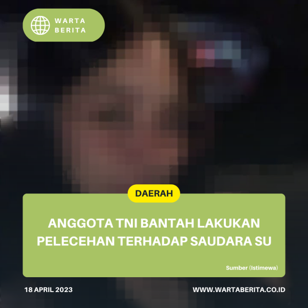 wartaberita.co.id – Medan | Adanya berita yang beredar yang mana Oknum Anggota TNI berinisial RN yang berpangkat Serka bertugas di satuan Koterem Bekangdam telah melakukan dugaan pelecehan terhadap wanita bernisial SU (23) tahun yang terjadi disalah satu hotel yang berada di Jl. Jamin Ginting, Kota Medan.