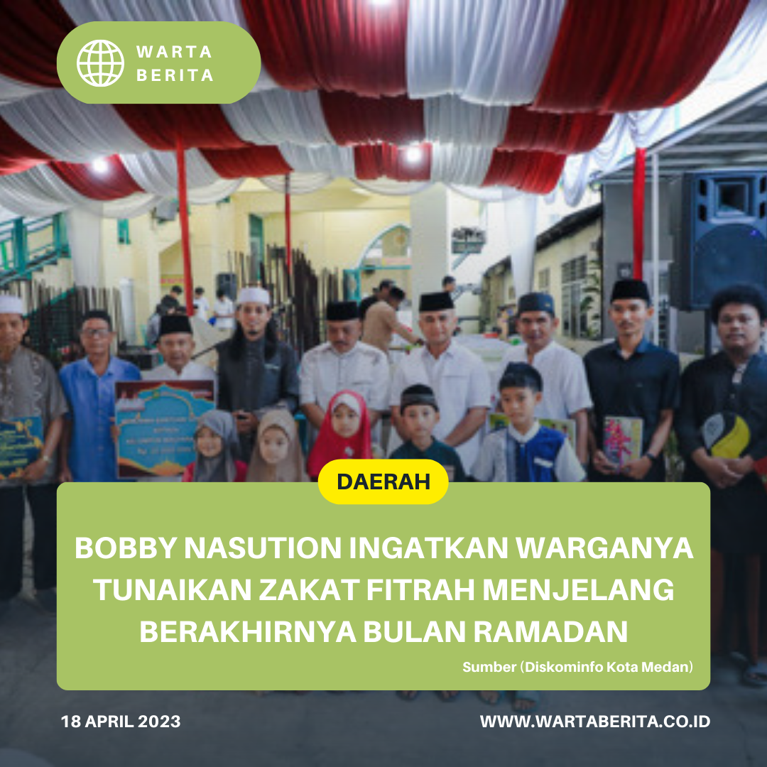 wartaberita.co.id – Medan | Menjelang berakhirnya bulan suci Ramadan, Wali Kota Medan Bobby Nasution mengingatkan kepada seluruh warga kota Medan khususnya warga yang mampu untuk dapat menunaikan zakat fitrah. Sebab diketahui bersama ada hak fakir miskin dalam setiap rezeki dan harta kita miliki.