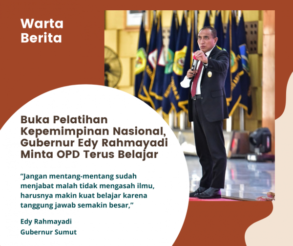 wartaberita.co.id – MEDAN | Gubernur Sumatera Utara (Sumut) Edy Rahmayadi mengingatkan pimpinan Organisasi Perangkat Daerah (OPD) di lingkungan Pemerintah Provinsi (Pemprov) Sumut terus belajar. Perubahan yang begitu cepat menurutnya harus diimbangi dengan pemimpin-pemimpin yang berkompeten.
