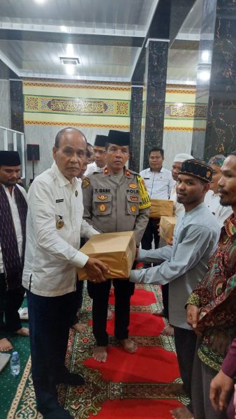 Di penghujung Acara Pemerintah Kabupaten Samosir bersama Forkopimda Kabupaten Samosir memberikan Sumbangan Sarung kepada pengurus dari 7 Masjid yang ada di Kabupaten Samosir.(VLS)