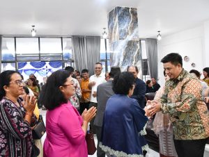 Wakil Bupati Samosir Martua Sitanggang bersama Pj. Sekdakab Samosir Marudut Sitinjak, para Asisten dan pimpinan OPD Kabupaten Samosir memberikan ucapan selamat atas dimasukinya rumah baru Bupati Samosir dan keluarga.