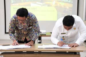WartaBerita.co.id – Samosir | Bupati Samosir Vandiko Timotius Gultom,ST lakukan penandatangan (teken) serah terima pengelolaan Aset Barang Milik Negara (BMN) antara Direktorat Jenderal Cipta Karya Kementerian PUPR dengan Pemerintah Kabupaten Samosir di Kantor Balai Pengembangan Kompetensi PUPR Wilayah I Medan yang berlokasi di Jl. Busi No. 2, Medan, Rabu (6/3/2024).