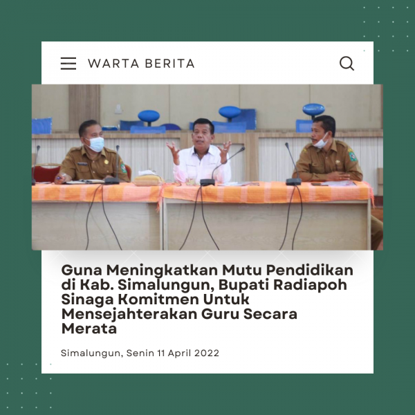 wartaberita.co.id – Simalungun | Bupati Simalungun Radiapoh Hasiholan Sinaga didampingi Asisten Pemerintahan dan Kesra Sarimuda AD Purba dan Kadis Pendidikan Zacson M Silalahi memimpin Rapat Koordinasi (Rakor) Dinas Pendidikan bersama Koordinator Wilayah (Korwil) Pendidikan se-Kabupaten Simalungun, di Balai Harungguan Djabaten Damanik Kantor Bupati Simalungun, Pematang Raya, Sumut, Senin (11/4/2022).