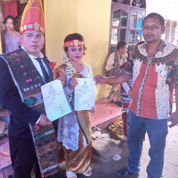 Akta Perkawinan itu diserahkan petugas desa setelah selesai pemberkatan di gereja HKBP Pakkat dan merupakan bagian dari program “SIPALAWIJA”.