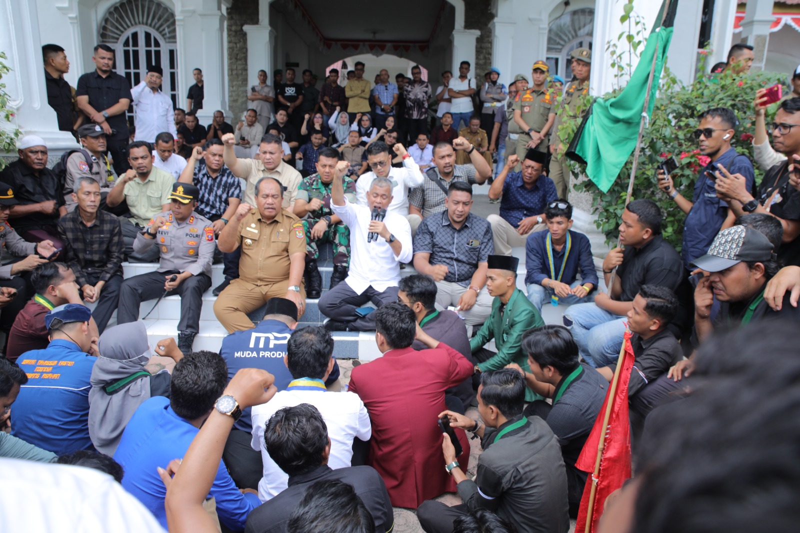 Komitmen itu terlihat saat Bupati Asahan, Taufik Zainal Abidin, S.Sos., M.Si., didampingi Wakil Bupati serta unsur Forkopimda—Ketua DPRD Kabupaten Asahan, Dandim 0208/Asahan, dan Kapolres Asahan—menerima langsung aspirasi mahasiswa kelompok Cipayung Plus di Gedung DPRD Asahan. Aksi berlangsung kondusif dengan orasi bergantian, lalu dilanjutkan dialog terbuka. Sebagai simbol kesetaraan, Forkopimda duduk sejajar dengan mahasiswa untuk mendengarkan gagasan dan tuntutan mereka.
