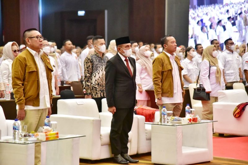 wartaberita.co.id – MEDAN | Gubernur Sumatera Utara (Sumut) Edy Rahmayadi menghadiri pembukaan Rapat Koordinasi Cabang (Rakorcab) Partai Gerindra DPC Medan. Pada kesempatan tersebut Edy Rahmayadi mengenang saat dirinya pertama kali dipinang Partai Gerindra dan mengusungnya menjadi Gubernur Sumut.