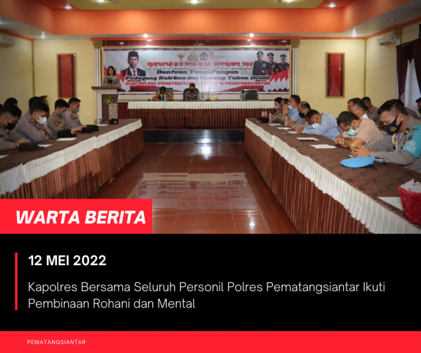 wartaberita.co.id – Pematangsiantar | Kapolres Pematangsiantar AKBP Fernando SH, SIK bersama dengan Personil yang beragama Kristen dan Islam mengikuti Pembinaan Rohani dan Mental (Binrohtal), Bagi Agama Kristen Bertempat Aula Wdidya Satya Brata dan Agama Islam dilaksanakan di Mesjid Safarul Qadri, Polres Pematangsiantar, Kamis (12 Mei 2022).