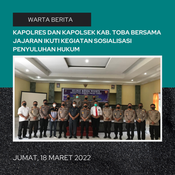 Kegiatan Sosialisasi Penyuluhan Hukum oleh Bidang Hukum (Bidkum) Kepolisian Daerah (Polda) Sumatera Utara (Sumut) terkait PPRI Nomor 42 tahun 2010 tentang hak-hak anggota Kepolisian Negara RI dan Perkap Nomor 02 tahun 2017 tentang tata cara pemberian bantuan oleh Polisi Negara RI diselenggarakan di Aula Harungguan Mardemak Polres Toba. (Jumat, 18/03/2022).