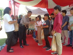 Setelah pemotongan tumpeng ulang tahun kegiatan dilanjutkan dengan pemberian santunan kepada anak yatim.