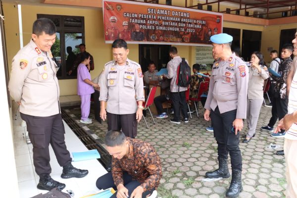www.wartaberita.co.id – Simalungun | Kapolres Simalungun AKBP Ronald F.C Sipayung, S.H., S.I.K., M.H., melaksanakan pemantauan dan pengecekan kegiatan Verifikasi Berkas Dan Pemberian Nomor Ujian Calon Peserta Penerimaan Anggota Polri Taruna Akpol, Bintara dan Tamtama Polres Simalungun TA 2023, di Halaman Kantor Bagian SDM Polres Simalungun, Jl. Jhon Horailam, Pamatang Raya, Kabupaten Simalungun, pada Jumat (14/4/2023) sekira pukul 09.00 WIB.