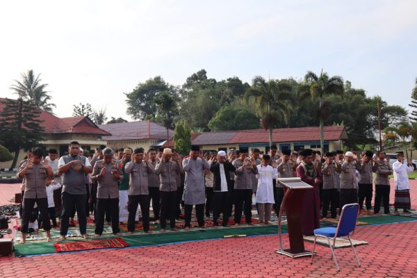 Pagi ini Kapolres Toba AKBP Taufiq Hidayat Thayeb, S.H., S.I.K., menunaikan Sholat Ied di ikuti 300 orang jamaah dari Ibu Bhayangkari, Personil Polres Toba yang beraga Muslim dan warga sekitar Mapolres Toba di Lapangan Apel Mapolres Toba dengan Khotib Shalat Idul Fitri yaitu Ustad Soleman Butar Butar, S.Sos, Sabtu (22/04/2023).