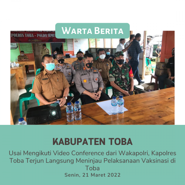 wartaberita.co.id – TOBA | Kapolres Toba AKBP Akala Fikta Jaya, S.I.K, MH. Didampingi oleh Kabag Ops Polres Toba Kompol Jhony Andreas Siregar, Kapolsek Balige Akp Agus Salim, Mewakili Danramil Balige 0210 TU, Mewakili kepala Dinas Kesehatan Kab.Toba Kepala Bidang p2p, Mangapul Pardede beserta Kepala Desa Longat Kab. Toba Horas M. Siahaan mengikuti Video Conference dari Wakapolri sekaligus meninjau pelaksanaan Vaksinasi Serentak di seluruh Indonesia bertempat di Kantor Kepala Desa Longat Kec. Tampahan Kab. Toba, Senin (21/03/2022).