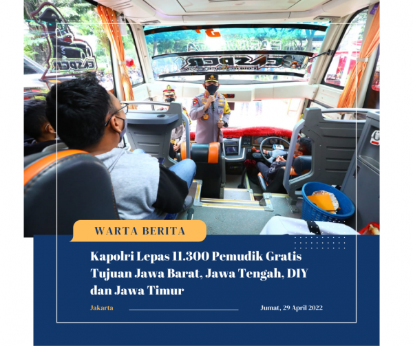 wartaberita.co.id – JAKARTA | Kapolri Jenderal Listyo Sigit Prabowo melepas pemudik yang dapat program mudik gratis dari Polri di Parkir Timur Gelora Bung Karno (GBK) Senayan, Jakarta, Jumat (29/4/2022).
