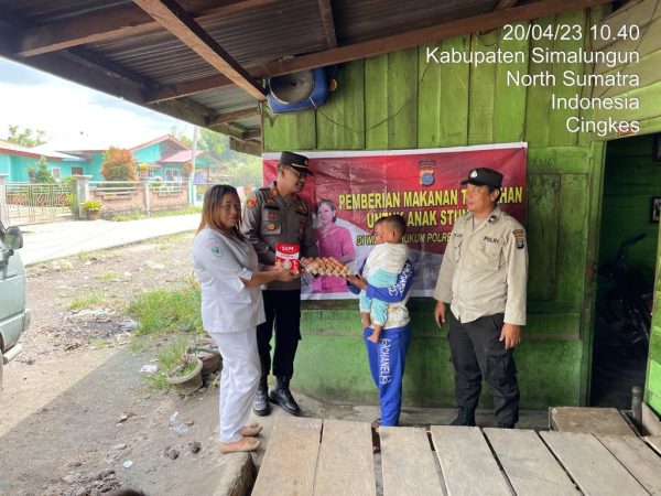 wartaberita.co.id – Simalungun | Kapolres Simalungun AKBP Ronald F.C Sipayung, melalui Kapolsek Dolok Silau kembali melaksanakan kegiatan PMT (Pemberian Makan Tambahan) untuk anak stunting di Nagori Tanjung Purba, Nagori Cingkes, Kecamatan Dolok Silau, Kabupaten Simalungun, Kamis (20/04/2023) pagi.