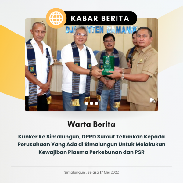 Pansus DPRD Sumut yang melakukan kunker di Kabupaten Simalungun dipimpin oleh Wakil Ketua Pansus Ir. Sugianto Makmur A.Md.Li bersama Frans Dante Ginting dan Jubel Tambunan, SE sebagai anggota Pansus, dalam rangka pembahasan Plasma dan Peremajaan Sawit Rakyat (PSR).