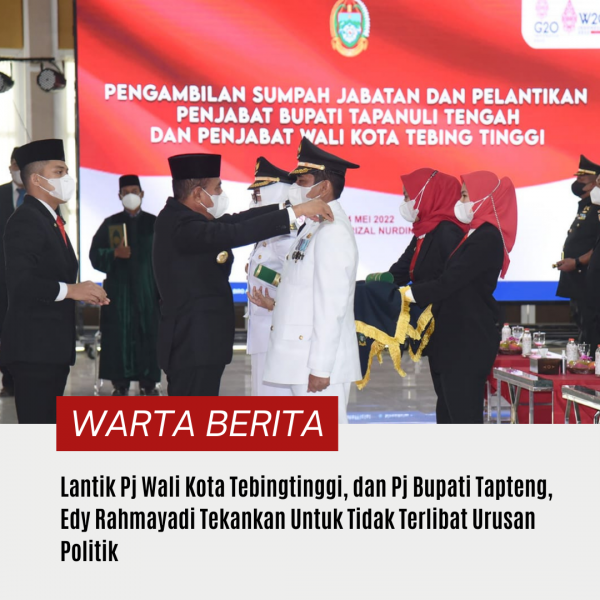 Ada tiga hal yang ditekankan Gubernur Edy Rahmayadi kepada Pj Walikota Tebingtinggi dan Pj Bupati Tapteng yang akan mengisi kepemimpinan hingga November 2024. Pertama, kedua Pj kepala daerah tidak boleh terlibat politik, karena berstatus Aparatur Sipil Negara (ASN). Kemudian loyal kepada daerah dan juga pemerintah pusat, dan ketiga bisa bekerja sama dengan yang lain.
