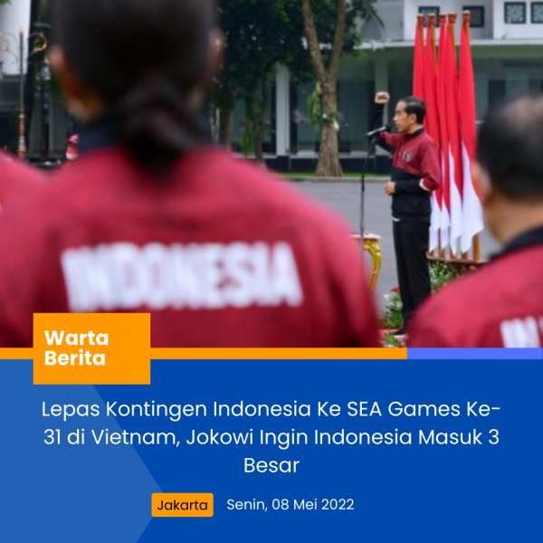 wartaberita.co.id – JAKARTA | Presiden Jokowi inginkan Indonesia masuk peringkat 3 besar pada SEA Games Ke-31 di Vietnam yang akan dilaksanakan pada 12-23 Mei 2022. Hal itu disampaikan Presiden pada saat pelepasan kontingen Indonesia yang akan berlaga di SEA Games ke-31 di vietnam, Senin (09 Mei 2022).