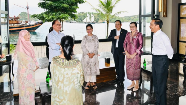 Suasana hangat terlihat ketika Presiden Joko Widodo dan Ibu Iriana berbincang dengan Perdana Menteri Kamboja Hun Sen. Selain itu, tampak juga Perdana Menteri Malaysia Anwar Ibrahim bersama istrinya Ibu Wan Azizah Wan Ismail duduk di satu sofa dengan istri Presiden Filipina, Ibu Louise Araneta-Marcos.