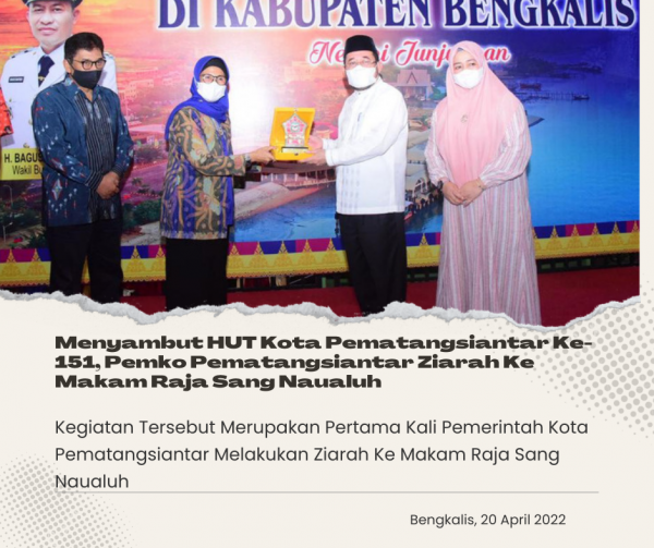 “Kunjungan ini adalah membangun silahturahmi dan memperkuat tali persaudaraan Pemerintah Kota Pematangsiantar dengan Pemerintah Kabupaten Bengkalis untuk saling menjaga dan merawat warisan budaya leluhur yaitu Raja Sangnaualuh yang di makamkan di Kabupaten Bengkalis,” Sebut Plt. Wali Kota Pematangsiantar.