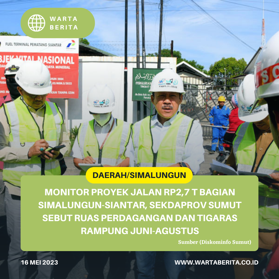 wartaberita.co.id – Simalungun | Sekretaris Daerah  Provinsi (Sekdaprov) Sumatera Utara (Sumut) Arief S Trinugroho meninjau langsung pembangunan jalan proyek Rp 2,7 Triliun Sumut. Kali ini Sekda meninjau Kawasan Kabupaten Simalungun dan Pematangsiantar.