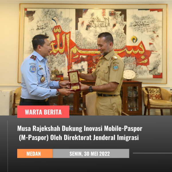 wartaberita.co.id – MEDAN | Wakil Gubernur (Wagub) Sumatera Utara (Sumut) Musa Rajekshah mengapresiasi inovasi terbaru Direktorat Jenderal Imigrasi, yakni Mobile-Paspor (M-Paspor). Ia pun meminta Kepala Kantor Imigrasi (Kanim) Kelas I Khusus Medan Johanes Fanny Satria Cahya Aprianto untuk terus memasifkan sosialisasi M- Paspor kepada masyarakat.