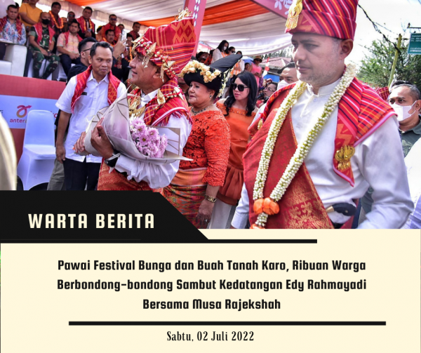 wartaberita.co.id – KARO | Gubernur Sumatera Utara (Sumut) Edy Rahmayadi disambut ribuan masyarakat yang sudah menunggunya pada pawai Festival Bunga dan Buah Tanah Karo 2022. Sepanjang jalan di Berastagi dipenuhi masyarakat yang antusias dengan festival dan kedatangan Gubernur Edy Rahmayadi.