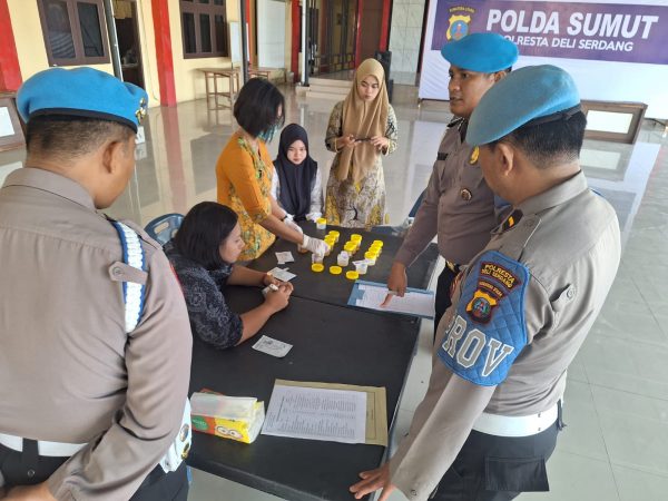 Pelaksanaan tes urine kali ini berlangsung di Aula Terbuka Polresta Deli Serdang, tes tersebut diawasi langsung oleh Kasi Propam Polresta Deli Serdang IPTU M Terrysvo Tarigan dan Kasi Dokkes Polresta Deli Serdang AKP Rasidin.