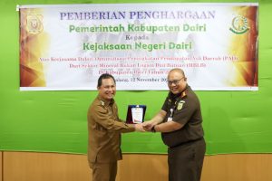 WartaBerita.co.id – Dairi | Pemerintah Kabupaten Dairi melalui Badan Pendapatan Daerah (Bapenda) memberikan penghargaan kepada Kejaksaan Negeri Dairi atas kontribusinya dalam mengoptimalkan Pendapatan Asli Daerah (PAD) dari sektor Mineral Bukan Logam dan Batuan (MBLB) di Kabupaten Dairi pada Tahun 2024. Penghargaan ini merupakan bentuk apresiasi nyata Pemkab Dairi terhadap kerjasama yang telah terjalin dengan Kejaksaan Negeri Dairi selama ini.