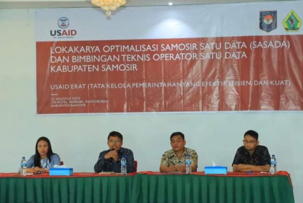 WartaBerita.co.id – Samosir | Untuk mengoptimalkan penyelenggaraan Satu Data di Kabupaten Samosir, Pemerintah Kabupaten Samosir bekerjasama dengan USAID ERAT menggelar Lokakarya dan Bimbingan Teknis (Bimtek) operator Sasada di Hotel JTS Parbaba, Kamis (31/08/2023).