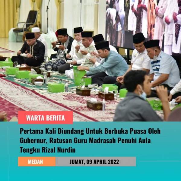 wartaberita.co.id – MEDAN | Gubernur Sumatera Utara (Sumut) Edy Rahmayadi mengundang guru-guru madrasah untuk berbuka bersama di Aula Tengku Rizal Nurdin, Jumat (8/4). Sekitar 600 guru madrasah hadir pada buka puasa bersama kali ini.