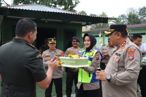 Rombongan Kapolres disambut langsung Komandan Kodim (Dandim) 0210/TU Letkol Inf Saiful Rizal bersama anggotanya.