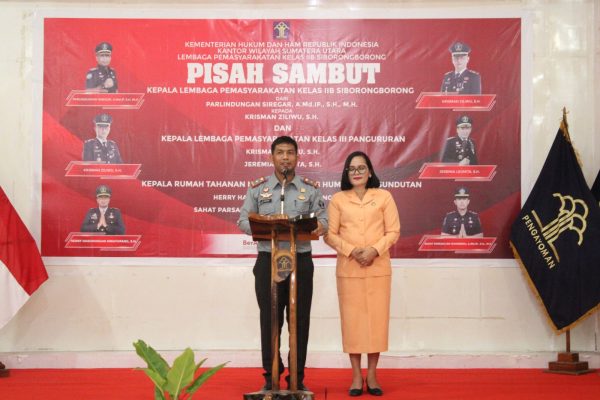 WartaBerita.co.id – Siborongborong | Kepala Lembaga Pemasyarakatan Kelas IIB Siborongborong resmi berganti sejak dilaksanakan acara serah terima jabatan dari Pejabat Lama (Parlindungan Siregar) kepada Pejabat Baru (Krisman Ziliwu), Selasa (24/10/2023).