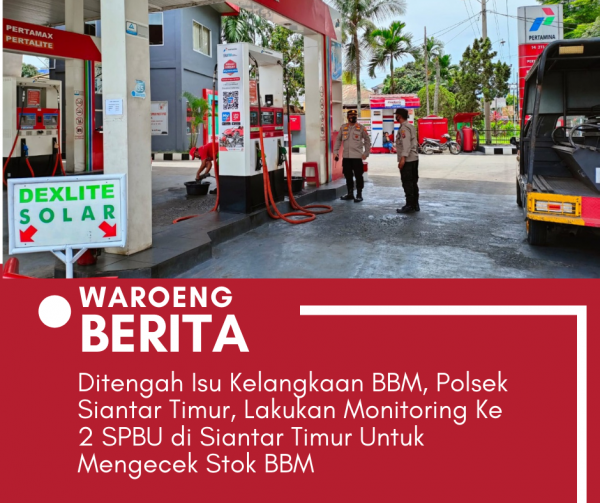 wartaberita.co.id – Pematangsintar | Untuk mengantisipasi terjadinya kelangkaan BBM jenis Solar diwilayah Polsek Siantar Timur Kota Pematangsiantar, Personil Polsek Siantar Timur melaksanakan monitoring dua Stasiun Pengisian Bahan Bakar Umum(SPBU) yang berada di wilayahnya, Kamis (07 April 2022).