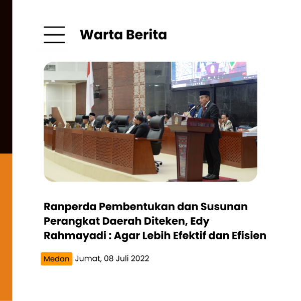 “Restrukrisasi perangkat daerah momentum yang tepat untuk menjawab tuntutan reformasi birokrasi dan persoalan internal dalam birokrasi. Hasilnya tentu meningkatkan secara signifikan pelayanan publik,” kata Edy Rahmayadi, pada Rapat Paripurna Pengambilan Keputusan Bersama DPRD Sumut dan Gubernur Sumut di Ruang Rapat Paripurna, Jalan Imam Bonjol Nomor 5, Medan, Jumat (8/7).