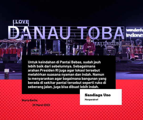 “Contohnya di Pantai Bebas ini, akan selalu ada event. Jadi yang selama ini dikatakan bahwa tamu kalau datang ke Parapat, masuk kamar selesai, nggak ada kegiatan. Hanya lihat pemandangan Danau Toba, itu yang mau kita ubah,” katanya.