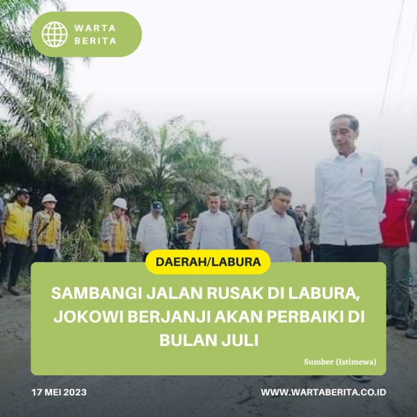 wartaberita.co.id – Labuhanbatu | Presiden RI, Joko Widodo, melakukan kunjungan kerja (Kunker) di Kabupaten Labuhanbatu Utara (Labura) Sumatera Utara, meninjau sejumlah jalan rusak Kecamatan Kaluh Selatan, Rabu (17/5/2023).