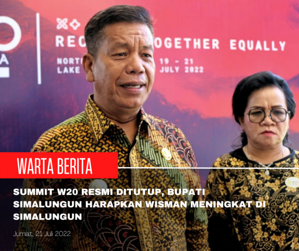wartaberita.co.id – Simalungun | Pelaksanaan kegiatan W20 Summit yang berlangsung sejak 19 hingga 21 Juli 2022 di Niagara Hotel Parapat Kecamatan Girsang Sipangan Bolon Kabupaten Simalungun, Sumut, resmi ditutup, Kamis (21/7/2022).