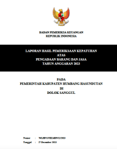 WartaBerita.co.id – Humbahas | Badan Pemeriksa Keuangan (BPK) Republik Indonesia (RI) telah mengeluarkan laporan hasil pemeriksaan (LHP) kepatuhan atas pengadaan barang dan jasa (PBJ) tahun anggaran 2023 pada Kabupaten Humbang Hasundutan (Humbahas) pada tanggal 27 Desember 2023.