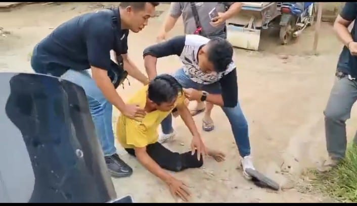 WartaBerita.co.id – Asahan |Seorang pria di Kabupaten Asahan diamankan tim gabungan Satnarkoba Polres Asahan bersama Tim Paus setelah menabrak sepeda motor petugas yang tengah melakukan patroli rutin. Insiden tersebut terjadi ketika pelaku diduga dalam pengaruh narkoba, sehingga bertindak di luar kendali.