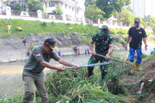wartaberita.co.id – Medan | Sebagai upaya untuk menciptakan lingkungan yang asri dan bersih serta mewujudkan program prioritas Wali Kota Medan Bobby Nasution di bidang kebersihan, Tim gabungan Pemko Medan melaksanakan kegiatan gotong royong massal di pinggiran aliran sungai Deli seputar kantor Wali Kota Medan, Sabtu (13/5/2023).