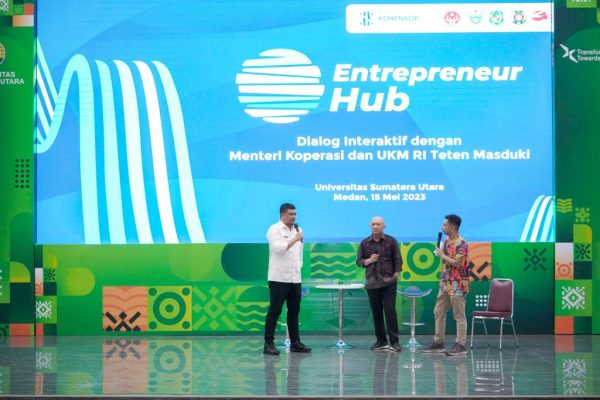 Dialog interaktif ini turut dihadiri Ketua Bidang Wirausaha Baru Dewan Kerajinan Nasional (Dekranas) Endang Budi Karya beserta jajaran, Deputi Bidang Kewirausahaan Kementerian Koperasi dan UKM Siti Azizah, Wakil Rektor I USU Edy Ikhsan, civitas akademika USU serta para mahasiswa ini.
