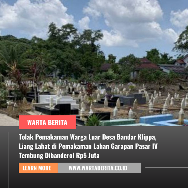 wartaberita.co.id – MEDAN | Tanah wakaf yang menjadi tempat pemakaman umum (TPU) muslim di lahan garapan eks HGU PTPN IV, tepatnya di Pasar IV, G. Wakaf Desa Bandar Klippa, Kecamatan Percut Seituan, kini menjadi sorotan. Pasalnya, pengurus TPU tersebut membanderol Rp 5 juta untuk 1 liang Lahat bagi warga yang ingin menguburkan jenazah di lahan ini.