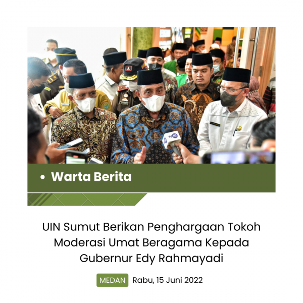 wartaberita.co.id – MEDAN | Gubernur Sumatera Utara (Sumut) Edy Rahmayadi mendapat penghargaan Tokoh Moderasi Umat Beragama. Penghargaan ini diberikan oleh Universitas Negeri Islam (UIN) Sumut saat seminar internasional Moderasi Beragama dan peluncuran logo baru perguruan tinggi tersebut.