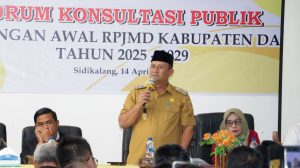 WartaBerita.co.id – Dairi | Wakil Bupati Dairi, Wahyu Daniel Sagala, secara resmi membuka penyelenggaraan Forum Konsultasi Publik untuk membahas rancangan awal Rencana Pembangunan Jangka Menengah Daerah (RPJMD) Kabupaten Dairi Tahun 2025-2029. Acara ini berlangsung pada Senin (14/4/2025) di Aula Bappeda Kabupaten Dairi dan dihadiri oleh berbagai pemangku kepentingan serta pihak terkait.