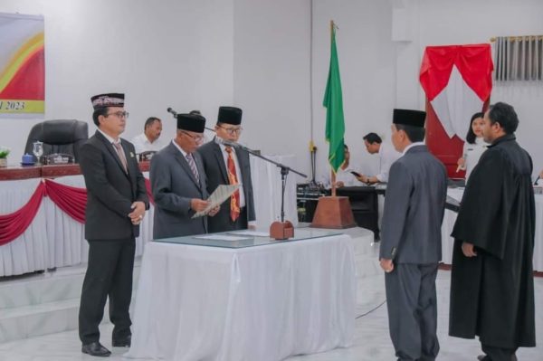 wartaberita.co.id – Humbahas | Wakil Bupati Humbang Hasundutan (Humbahas), Dr. Oloan Paniaran Nababan, SH, MH menghadiri Pengambilan Sumpah/ Janji Pengganti Antar Waktu (PAW) Anggota DPRD atas nama Darwin Sarman Marbun, AMD menggantikan Drs. Moratua Gaja, MM dari Partai Gerindra pada Paripurna DPRD di Gedung DPRD Perkantoran Tano Tubu, Doloksanggul. Selasa (26/4/2023).